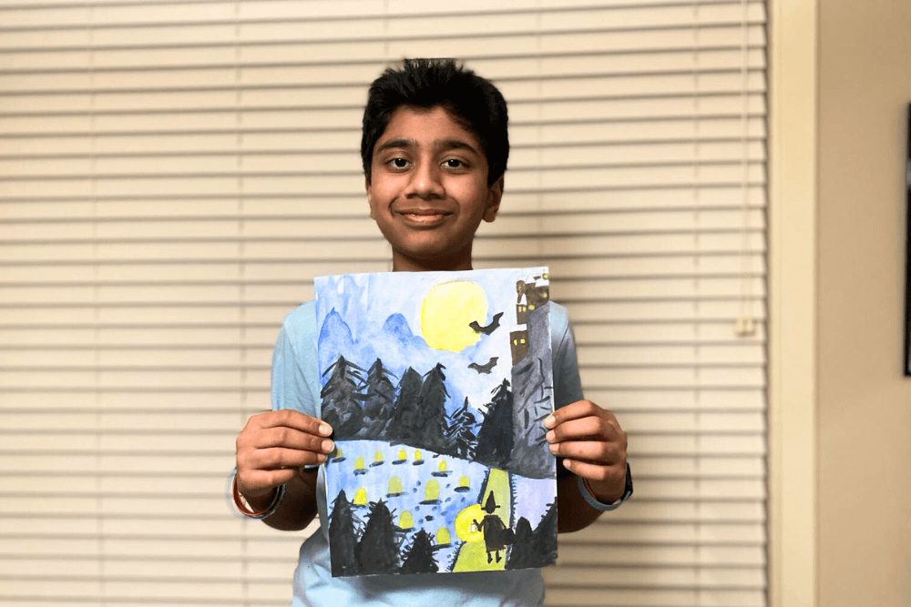 Meet the talented 11-year-old artist, Gaurik Cheruku, whose artistic prowess extends beyond his years. When he’s not busy creating awe-inspiring art, Gaurik enjoys indulging in his favorite hobbies – Soccer and Basketball. With dreams of playing in the NBA, Gaurik’s passion for basketball emerged when he first moved to a new place and witnessed a friend showcasing his basketball skills.