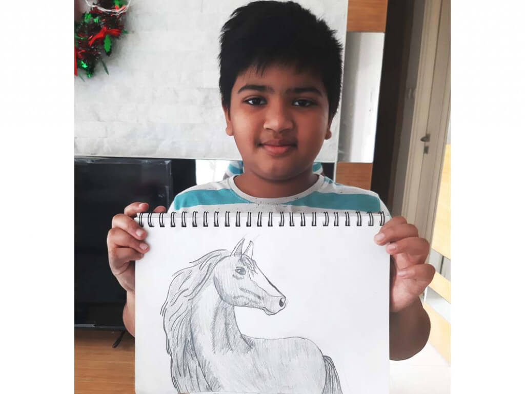 At first, it was about drawing whatever he imagined or came to mind. After learning through Nimmy’s Online Art Classes and video lessons, his imaginations wandered off to the wonders of animals. He’s been drawing animals since the age of three!