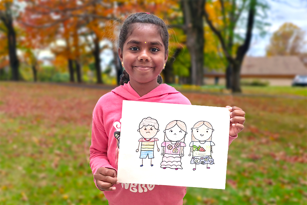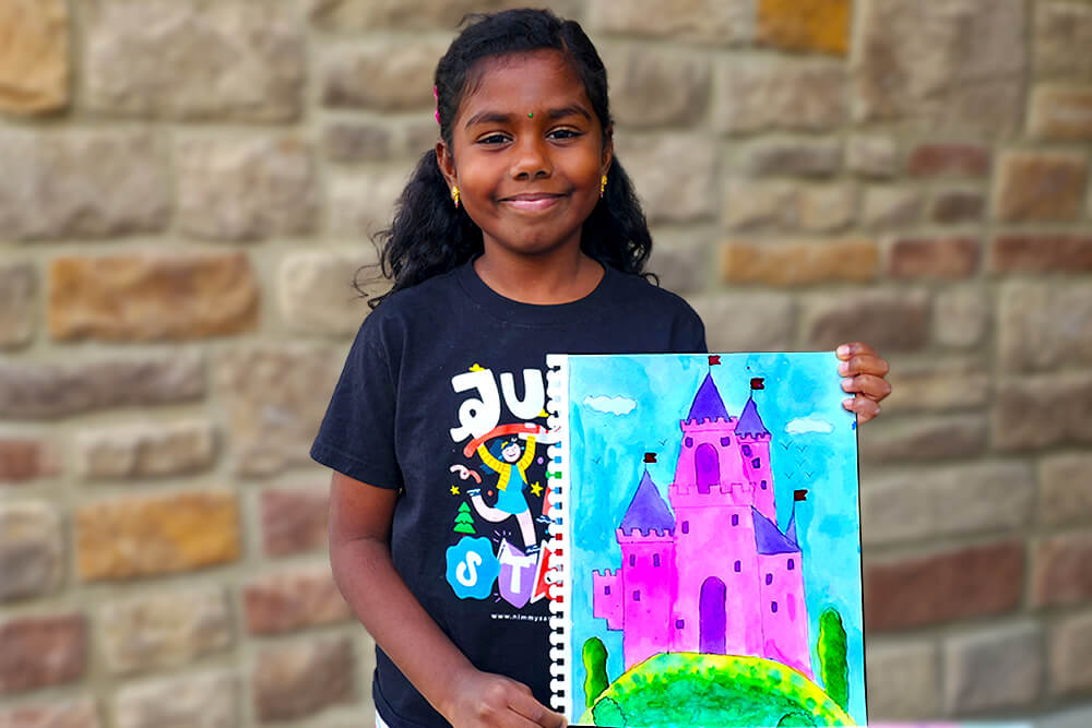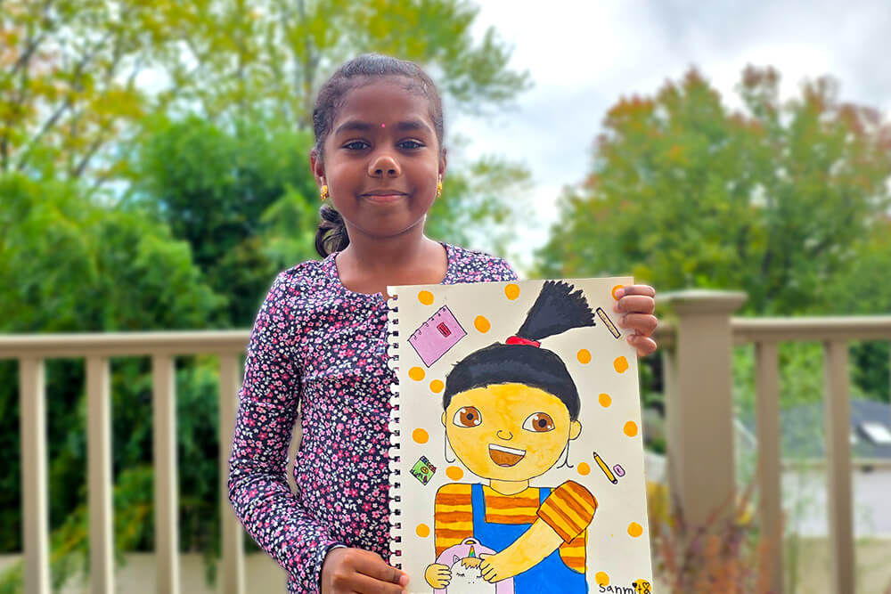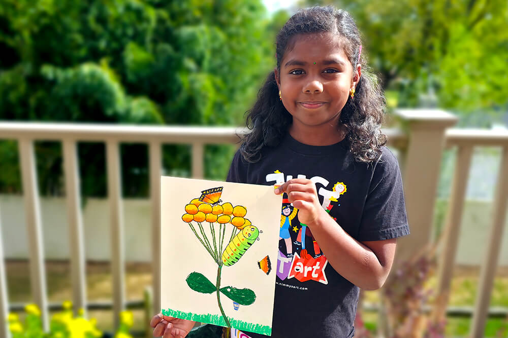 Clearly, Sanmita’s creativity thrives in an environment filled with variety and encouragement. Each new subject helps her discover another side of her talent, and her love for “cute” themes adds so much joy to her artwork.