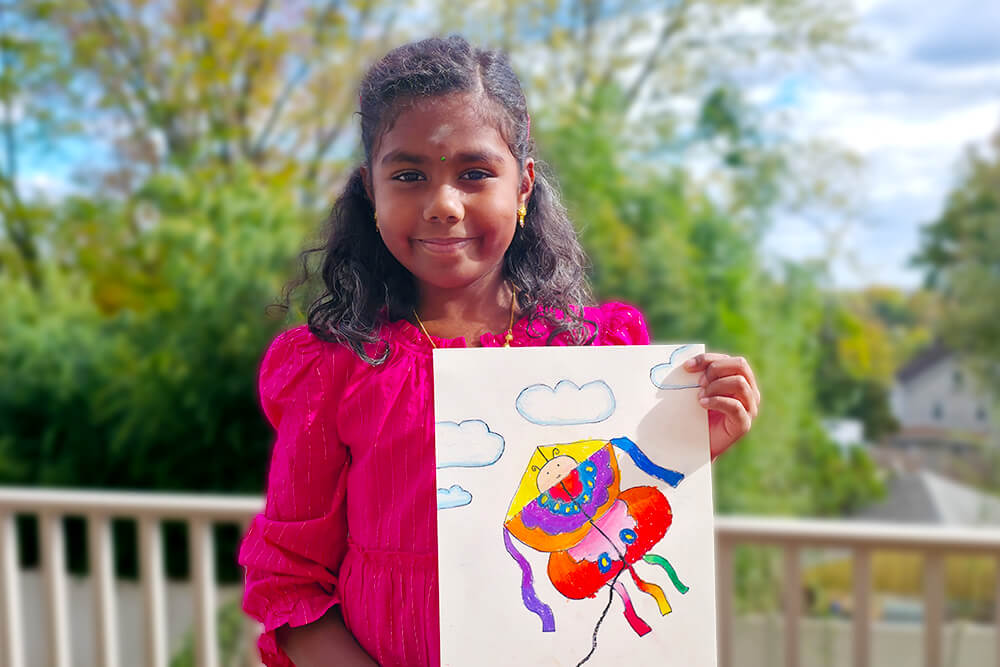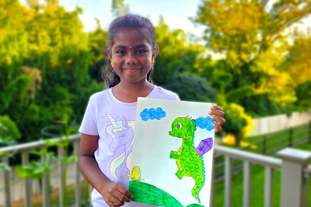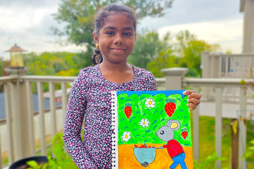 “My favorite thing about the weekly art classes is drawing and painting different objects, landscapes, and characters each week. I love learning new skills from Ms. Nimmy, especially when we draw something cute in class. It always makes me feel excited and inspired.”